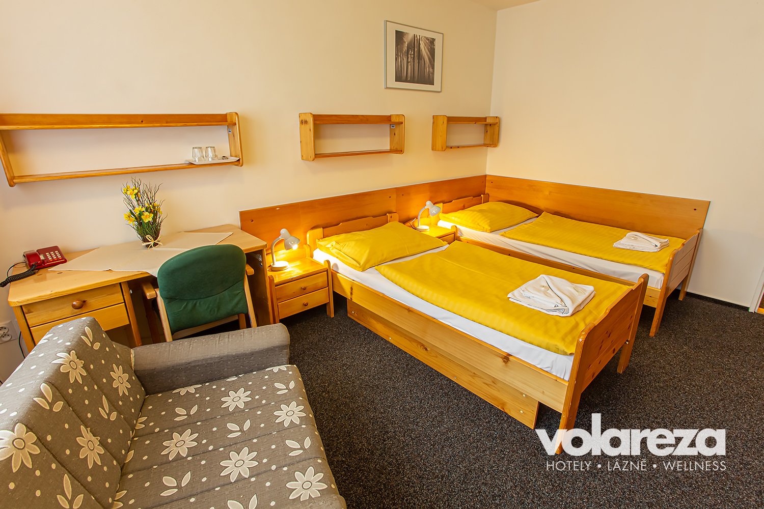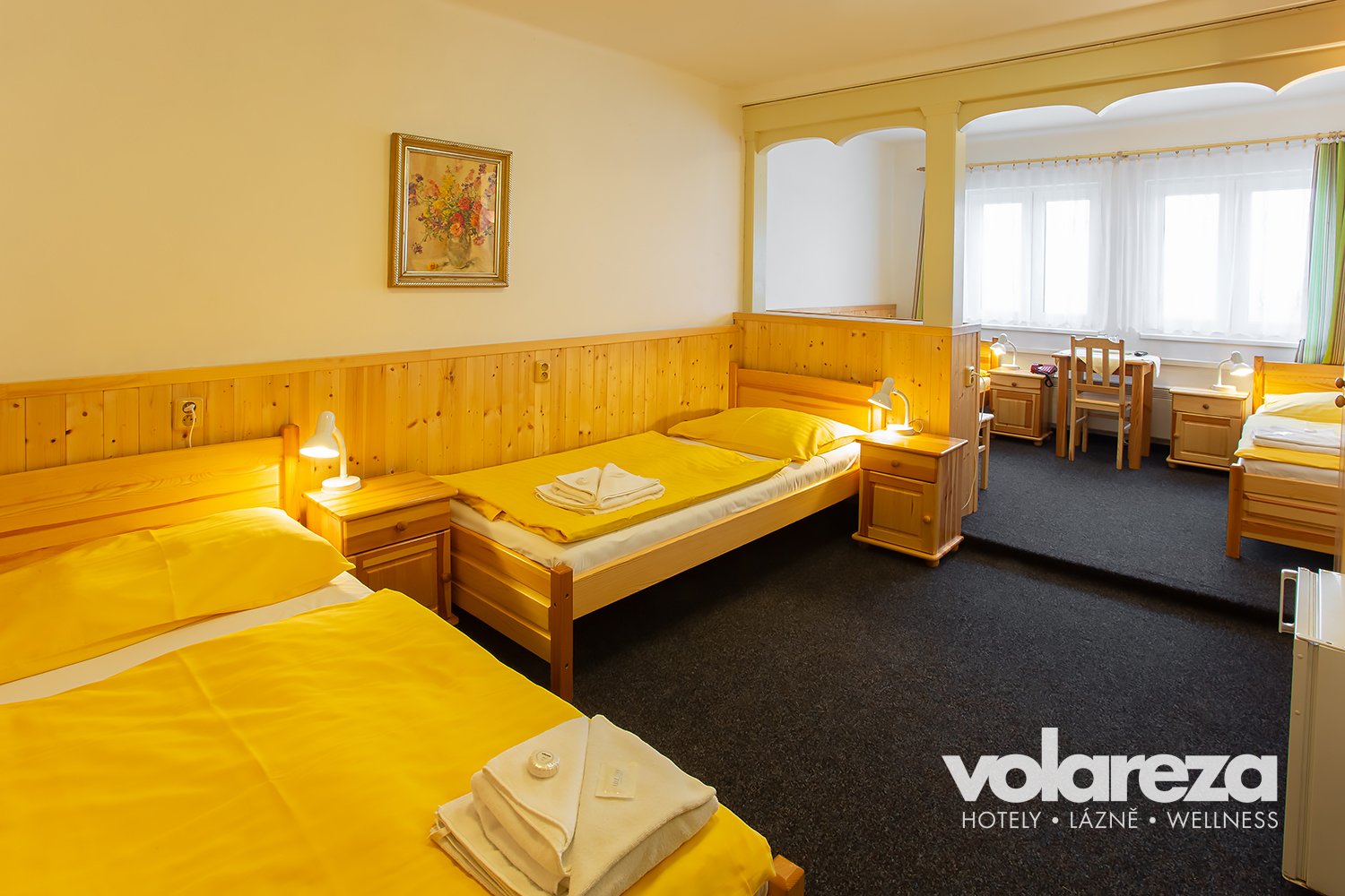 unit-type rooms with two, three and four beds – Sat-TV, telephone set, refrigerator in the room or in the litle hall which is together with bathroom (with shower) shared by two rooms. Composition of these rooms: